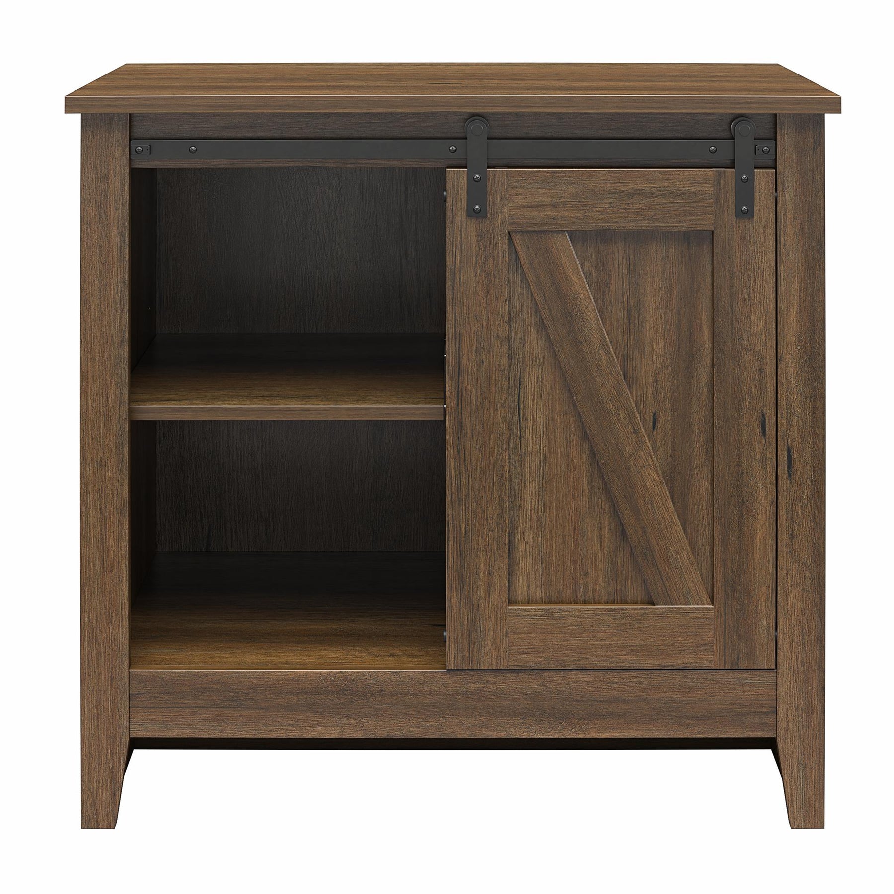 Alton Nightstand with Sliding Barn Door and 4 Shelves - Rustic Walnut