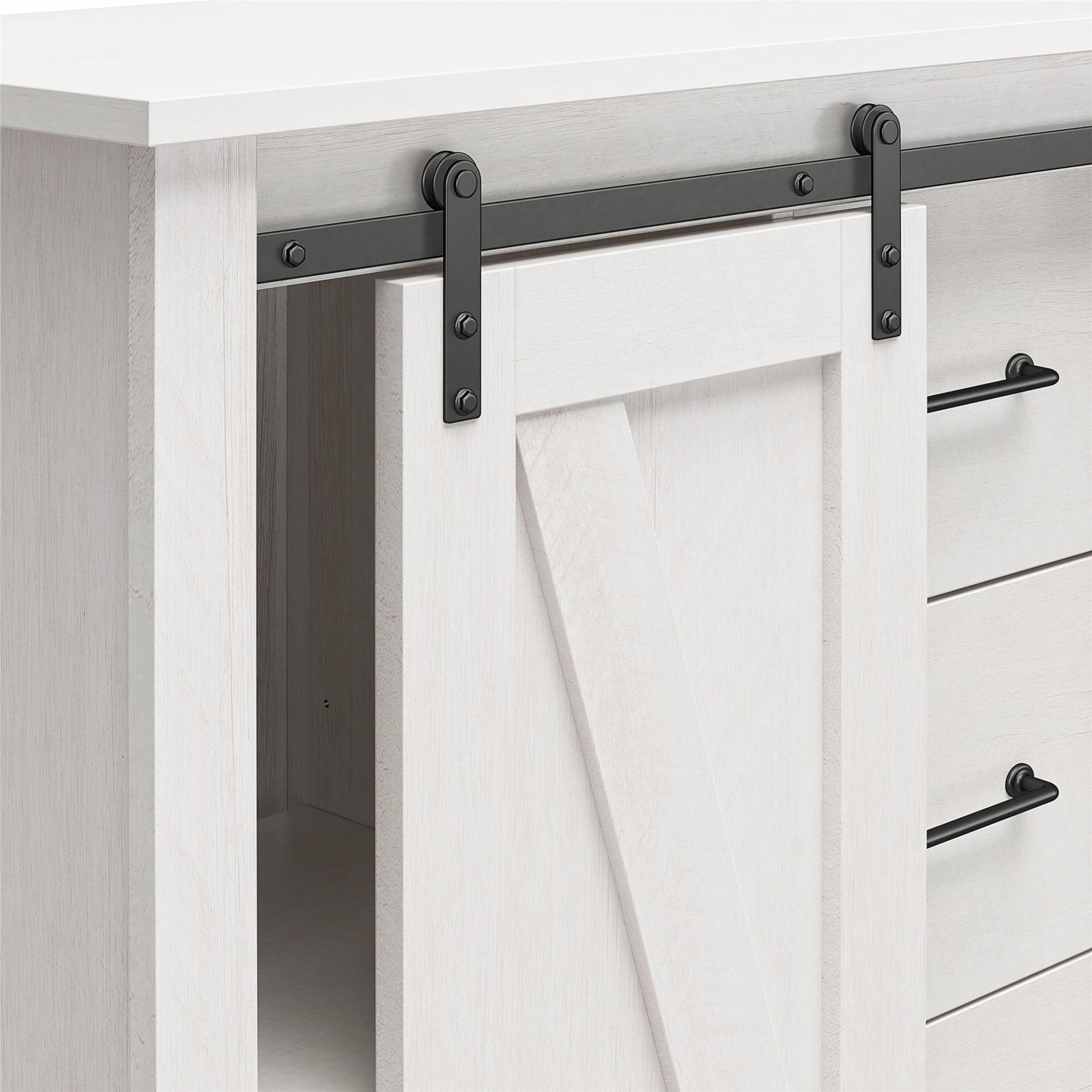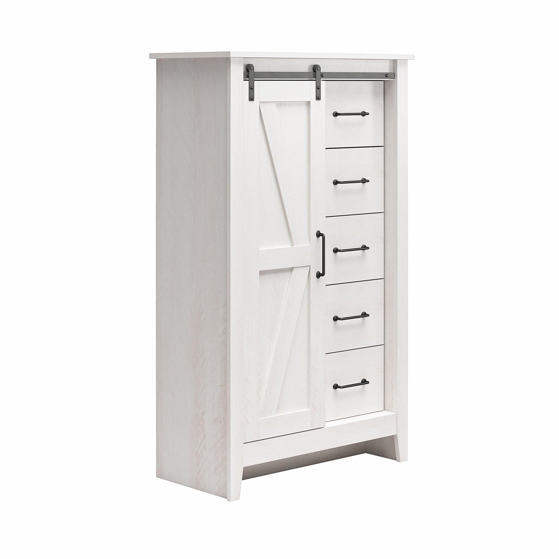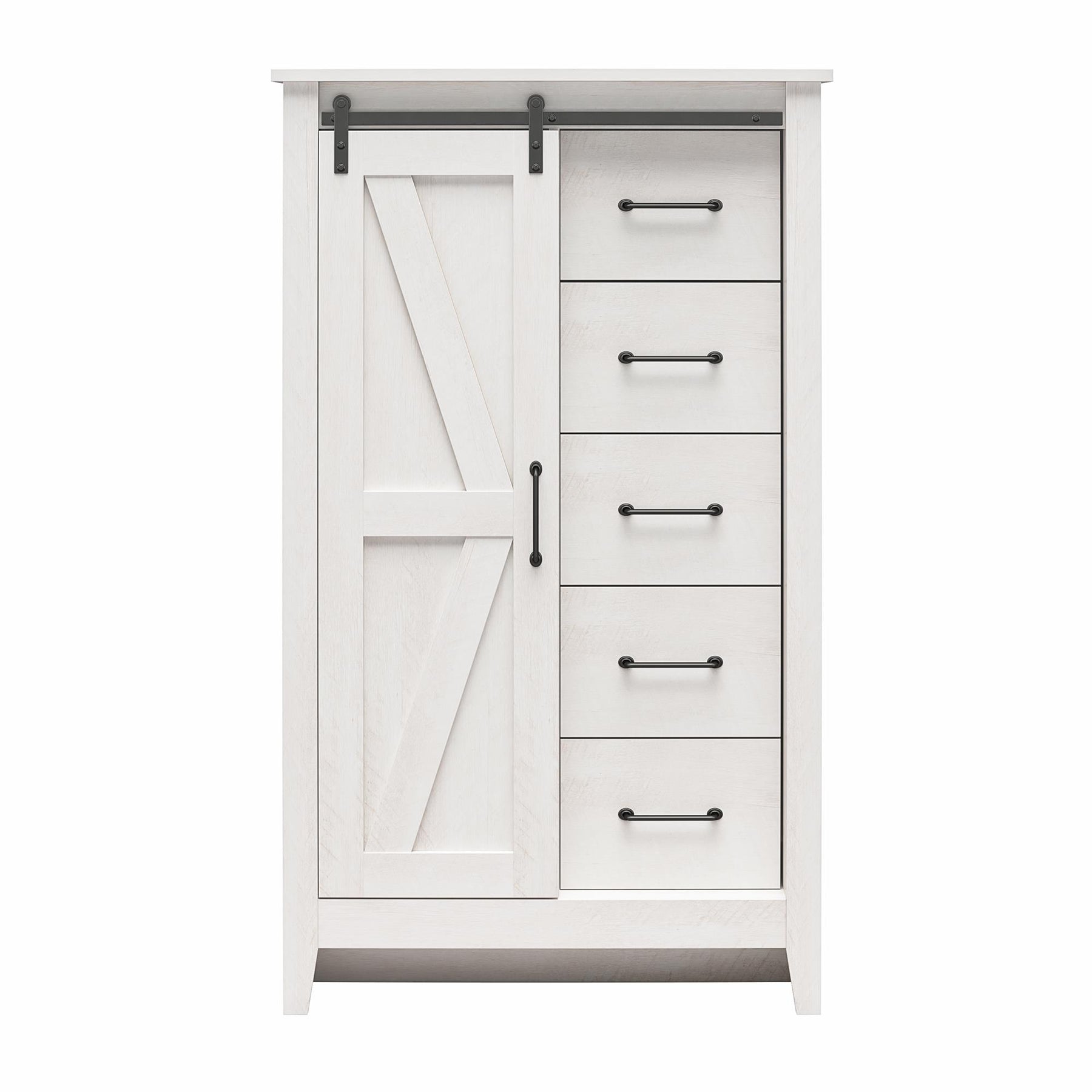 Alton Tall 5 Drawer Dresser with Sliding Barn Door and 3 Shelves