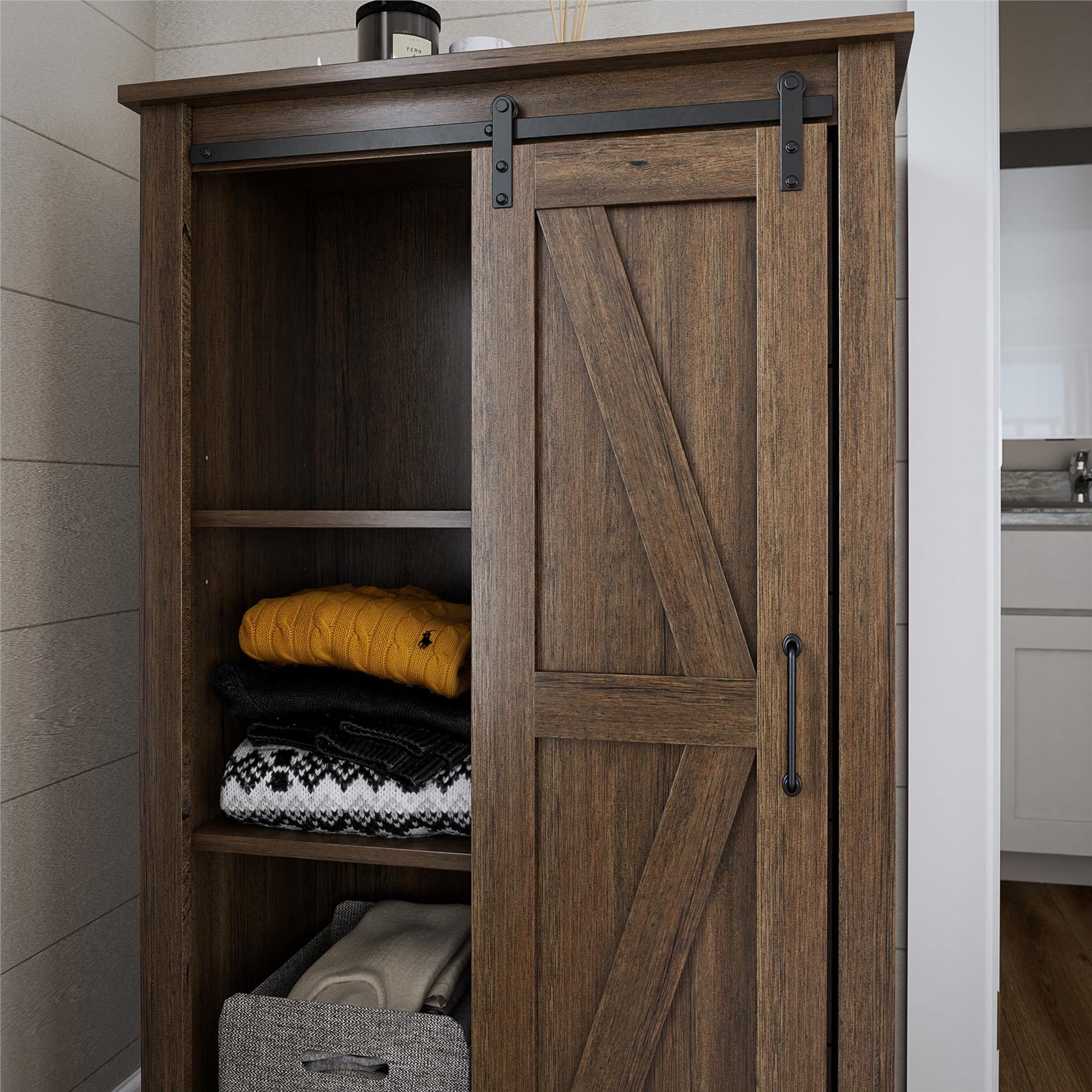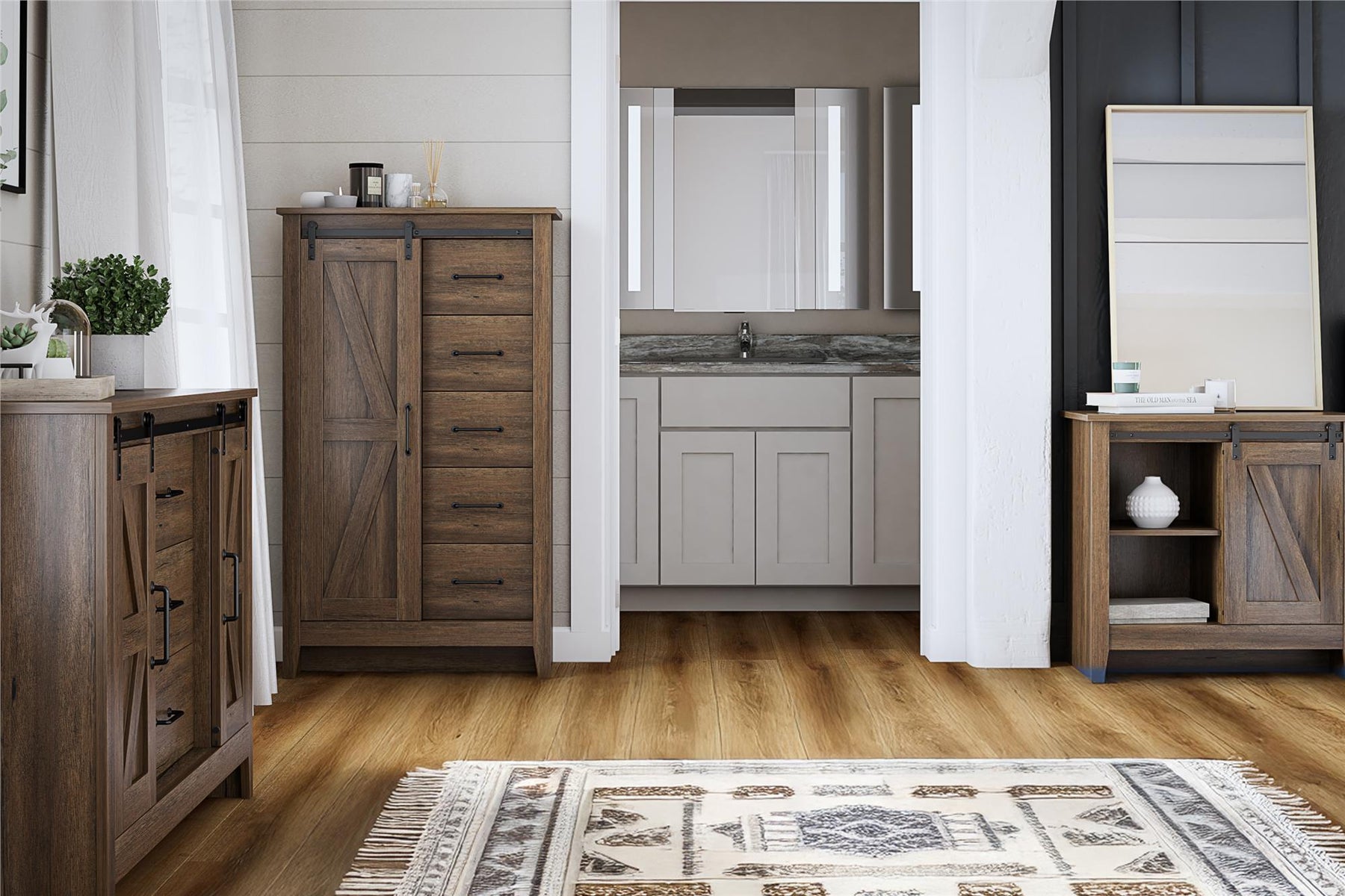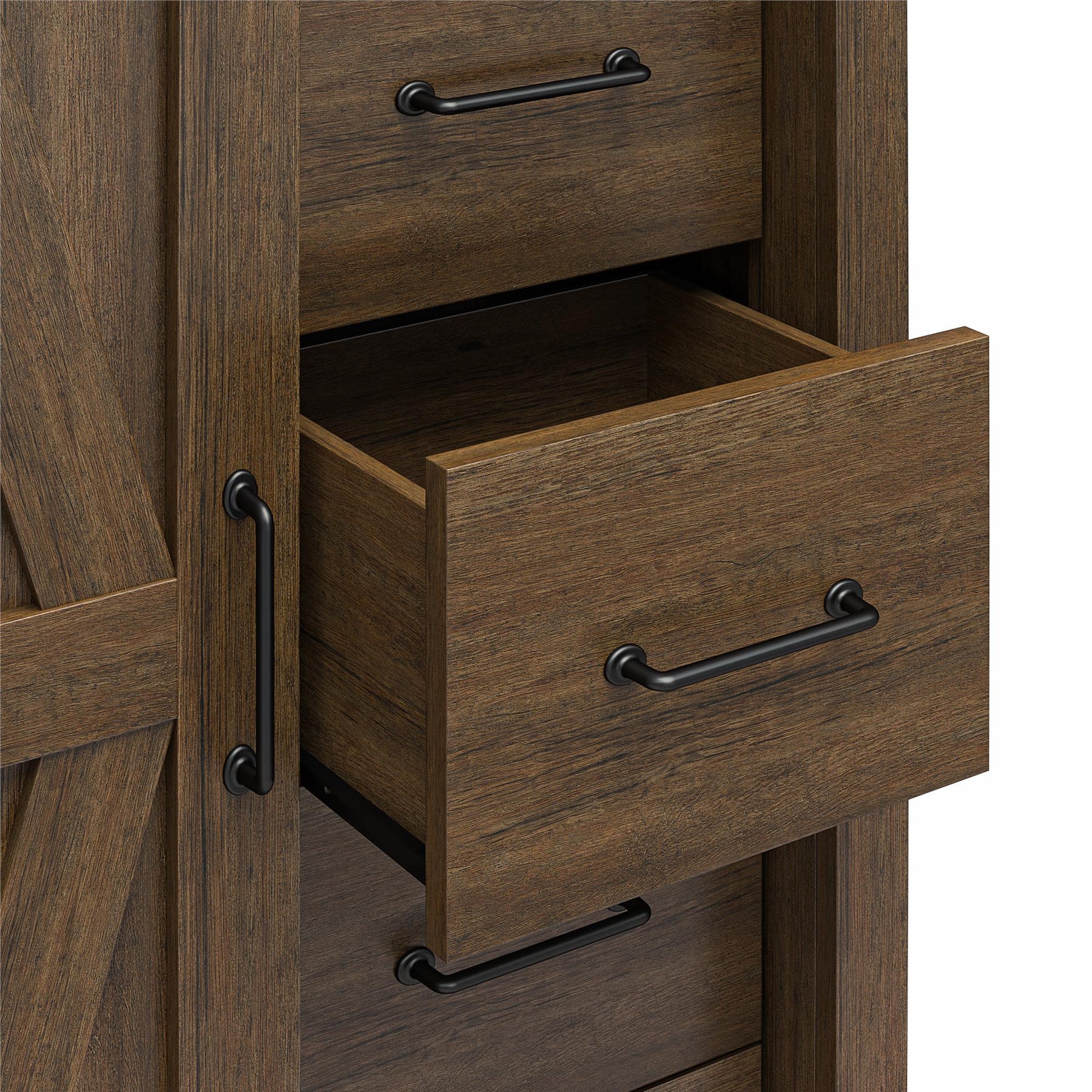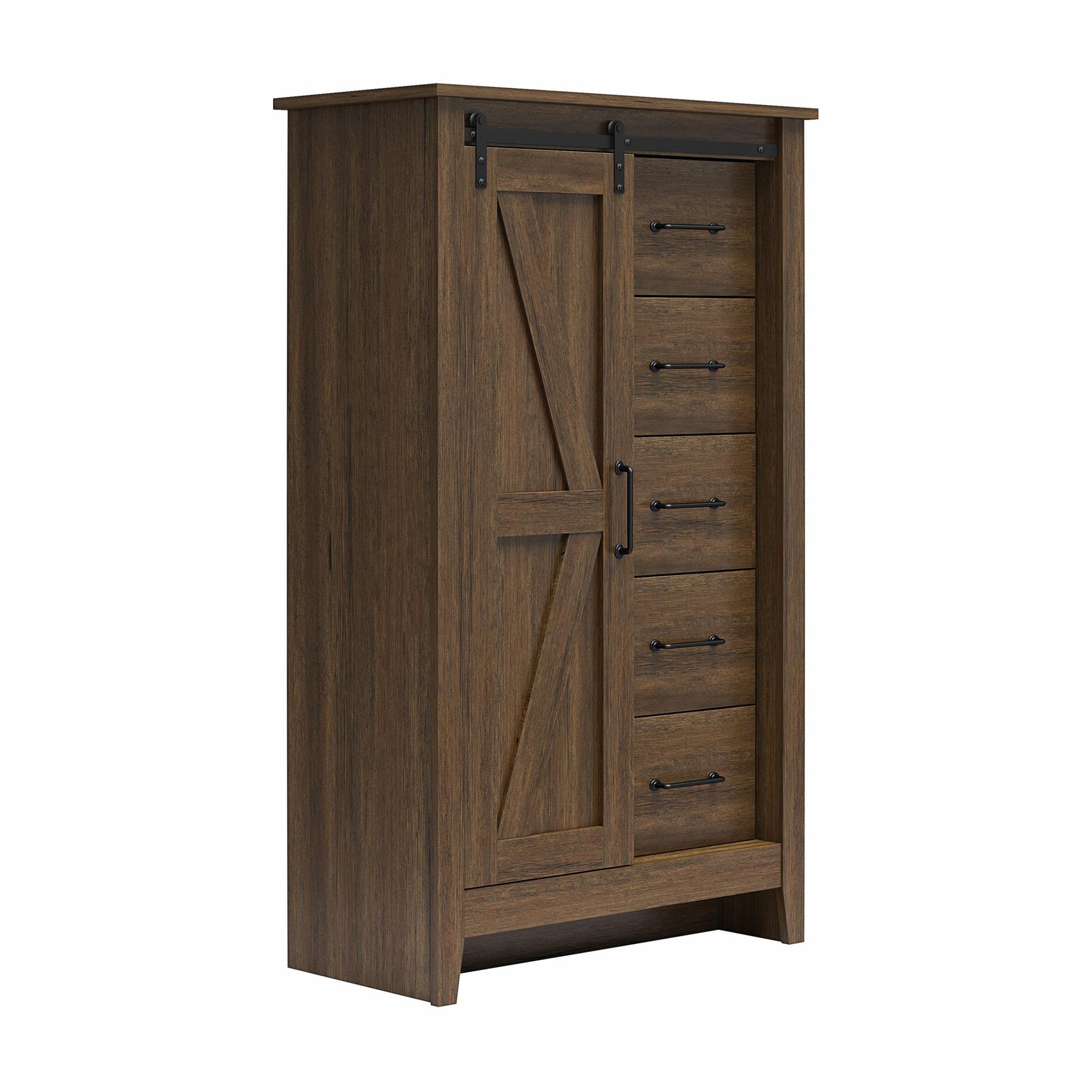 Alton Tall 5 Drawer Dresser with Sliding Barn Door and 3 Shelves - Rustic Walnut - 5 Drawer