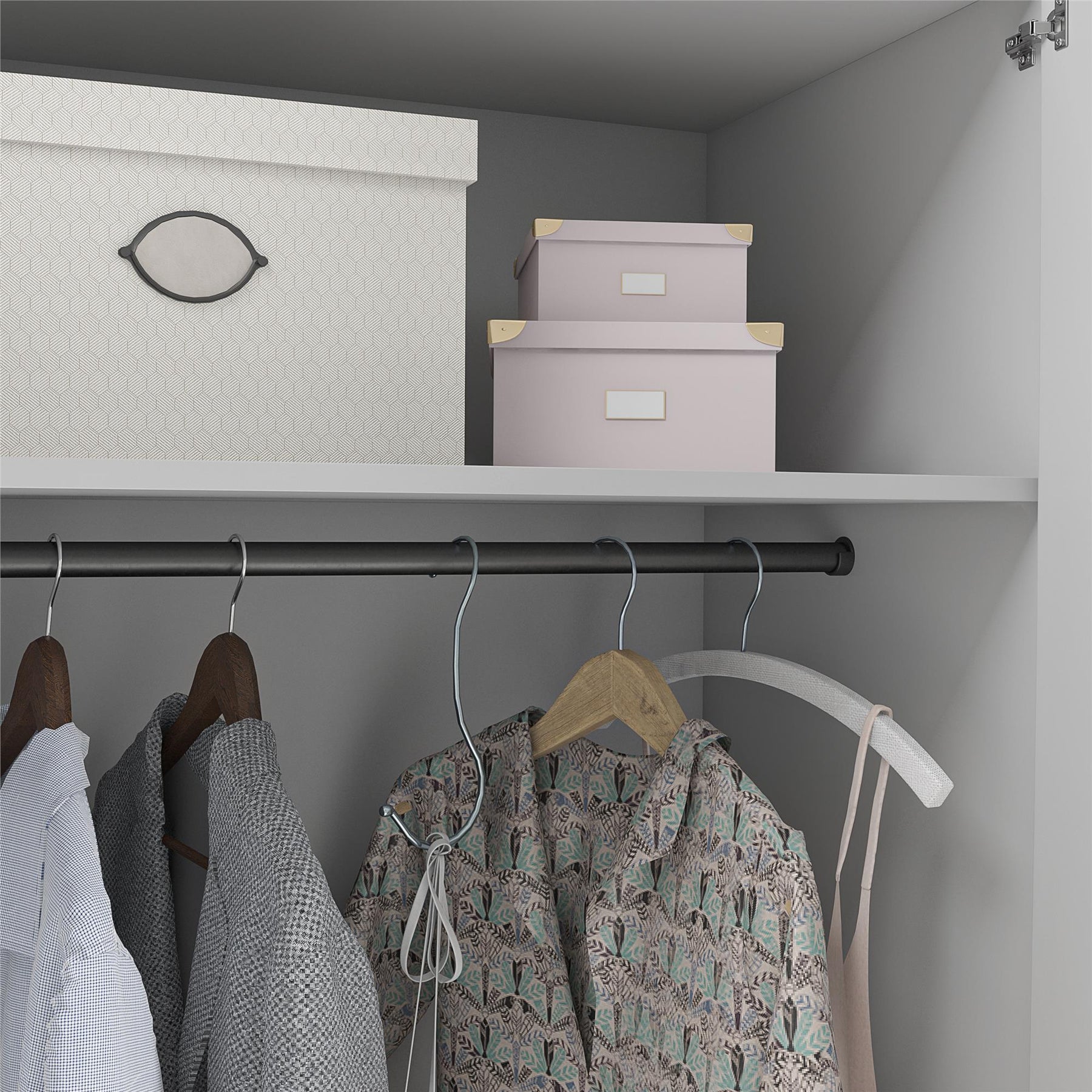 Streamline your morning routine and organize your closets with the Basin 3 Door Wardrobe with Hanging Rod and Adjustable Shelving. Open any one of the 3 doors to reveal massive amounts of storage space with room for customization. Hang, stack and store your way to a more conducive closet experience. Behind the double doors, you'll find both upper and lower shelving for shoes and hats, as well as a clothing rod for ample hanging space. The single door opens to another 4 roomy shelves, 1 fixed, and 3 adjustable, for items tall to small. Made from engineered wood and available in multiple neutral finishes, the Basin 3 Door Wardrobe ships flat to your door in 2 boxes. Two adults are recommended to assemble. Once assembled, the Wardrobe measures to be 47.36"W x 19.69"D x 74.27"H.