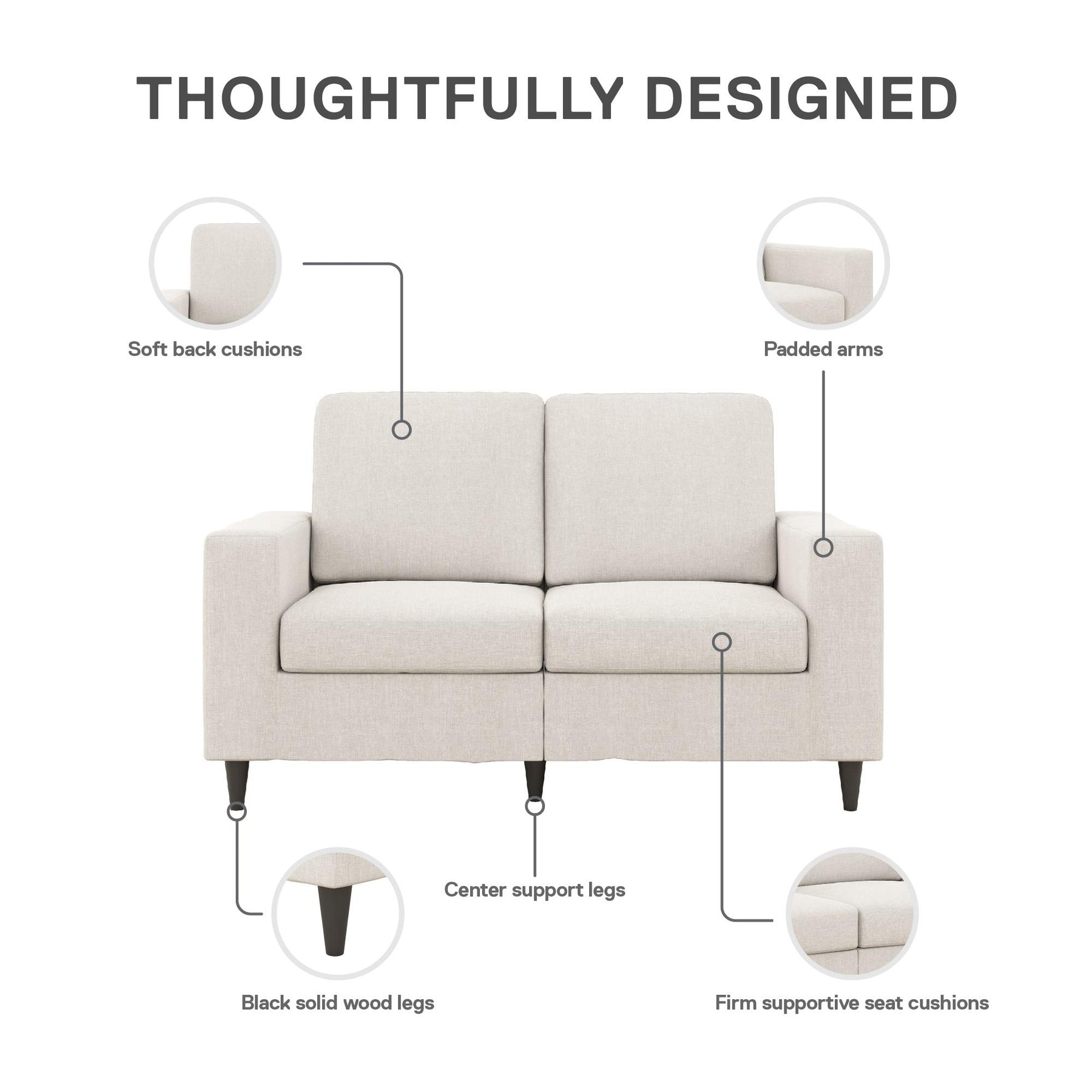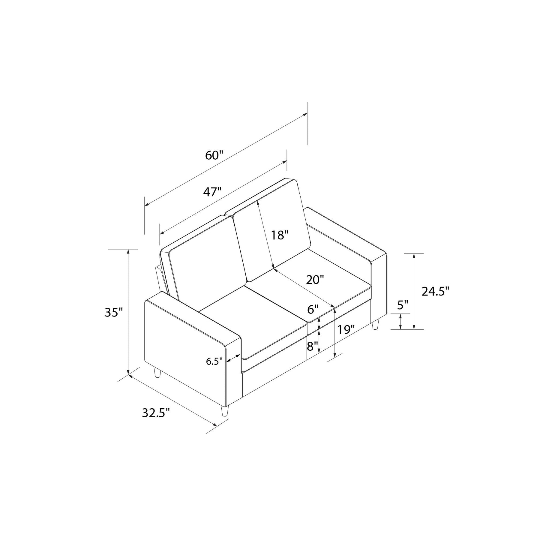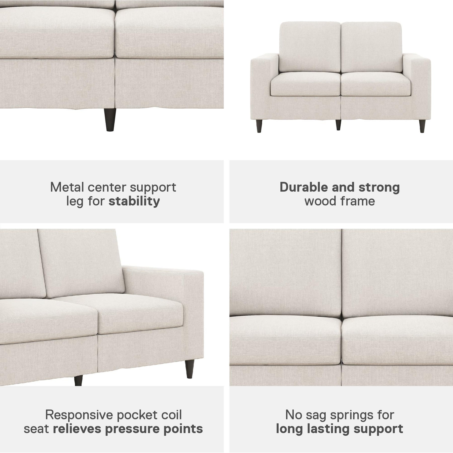 Contemporary with a touch of modern flair, the DHP Cooper Loveseat is the two-seater sofa you need in your life. Why? This stylish couch is designed with a beautiful and soft upholstery, and features pocket coil seats to help provide optimal comfort for those movie nights or mid-afternoon naps. What's more, the Cooper is built with a sturdy wood frame that sits on solid rubber wood legs with a black finish to ensure it will stay in your home for years to come. Do you enjoy hosting and need even more seating areas? All you have to do is pair with the matching DHP Cooper Sofa which provides three more comfortable seats for your friends and family to spend the evening catching up. With a variety of color and material options, this DHP Cooper 2 Seater Loveseat is the perfect piece of furniture to complete your living room decor. What are you waiting for?