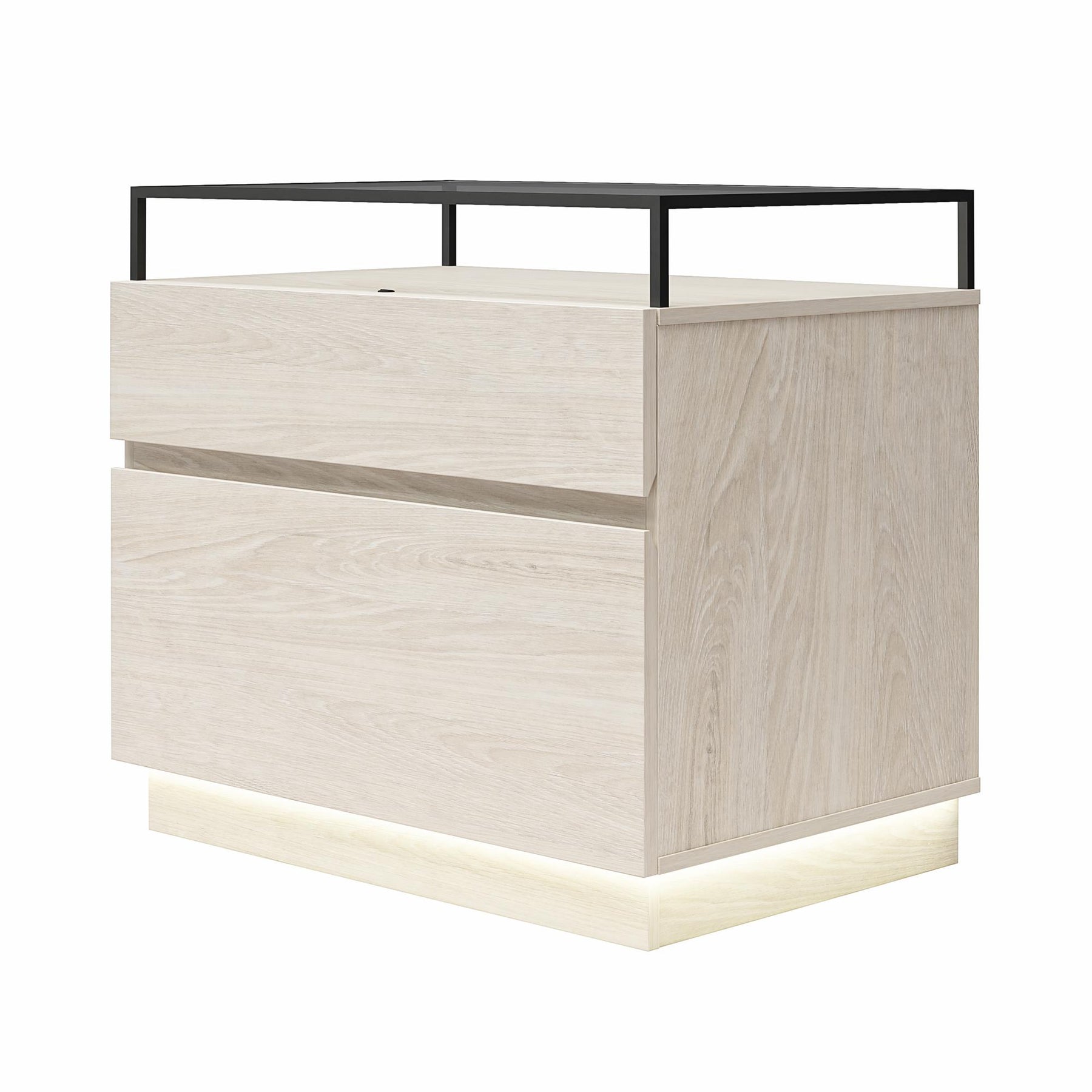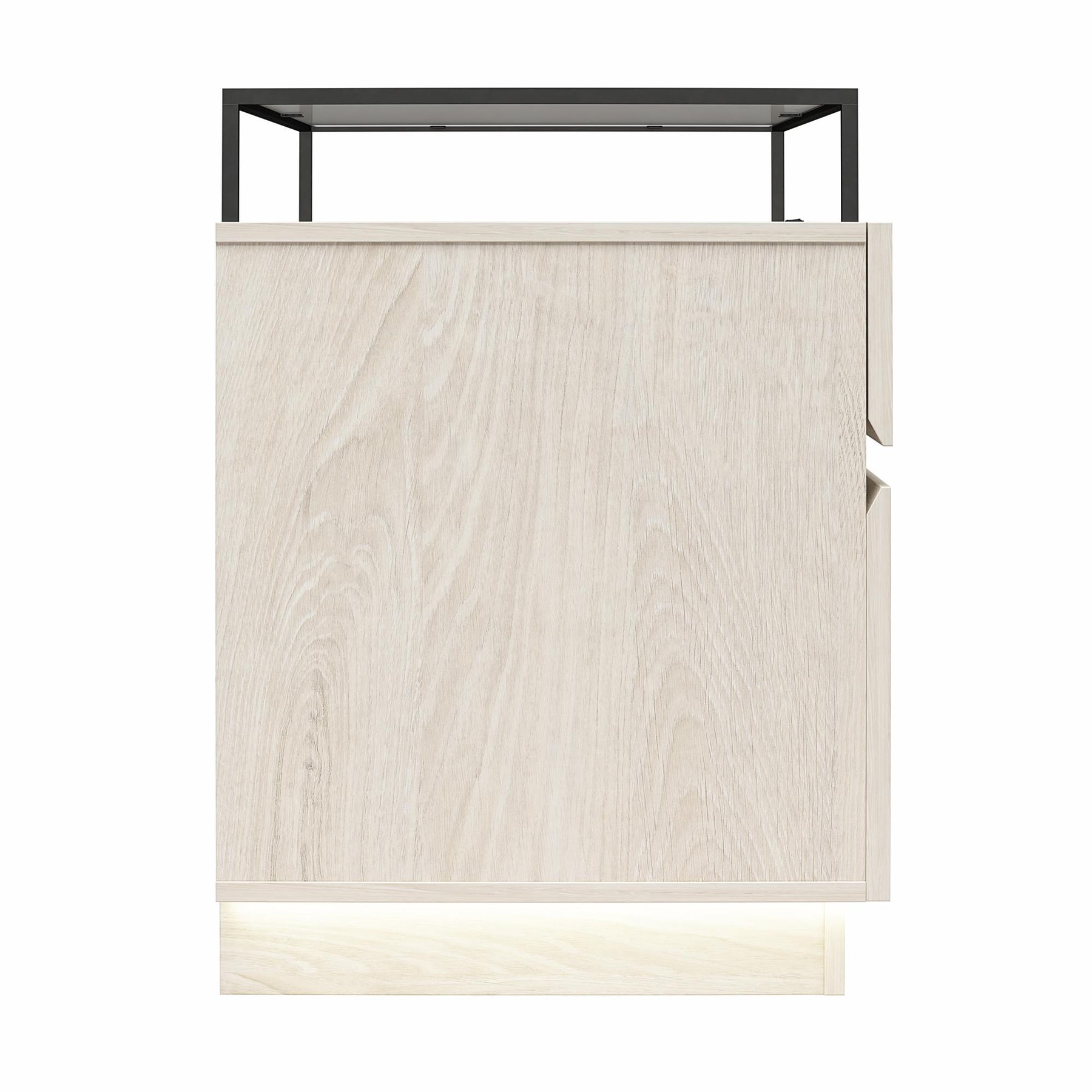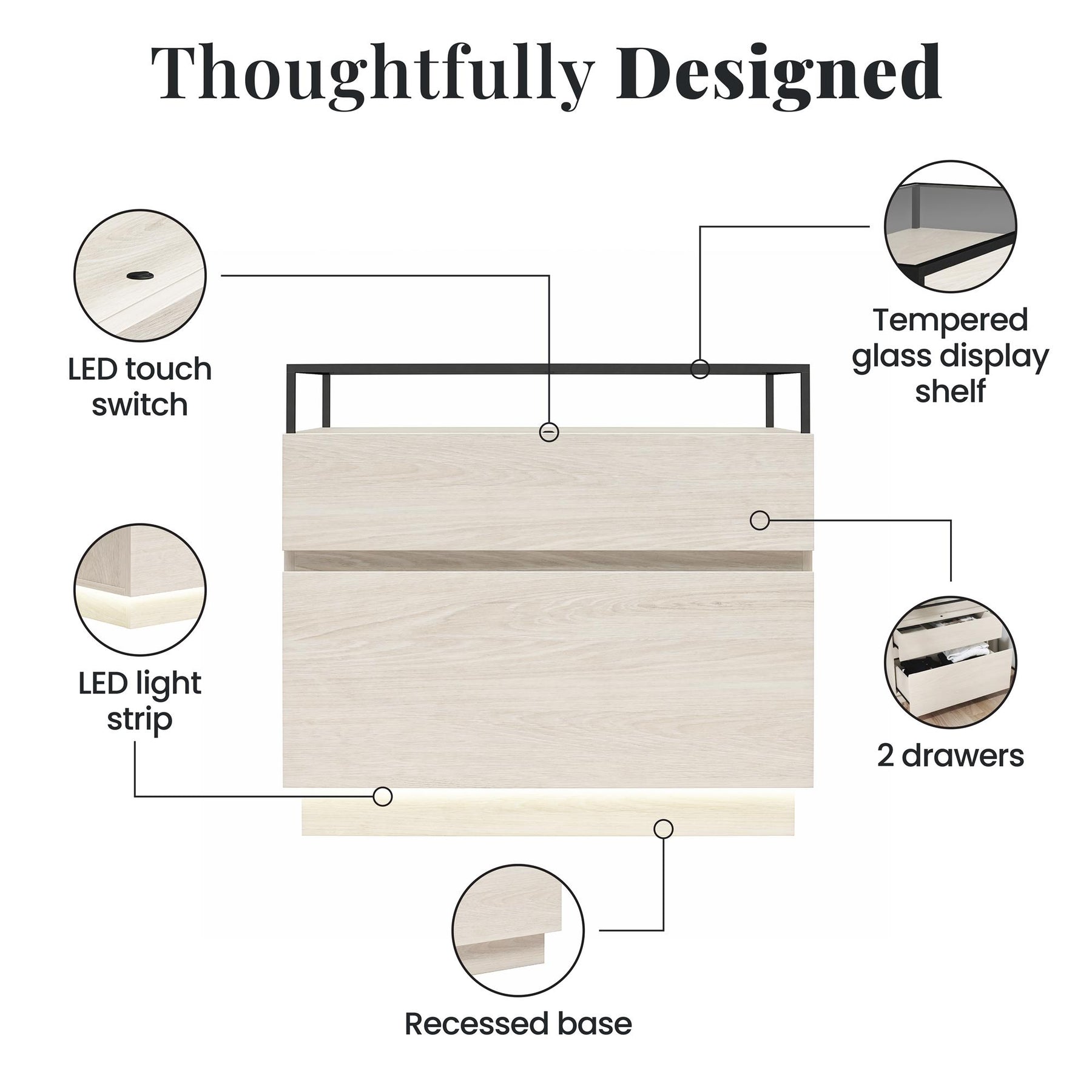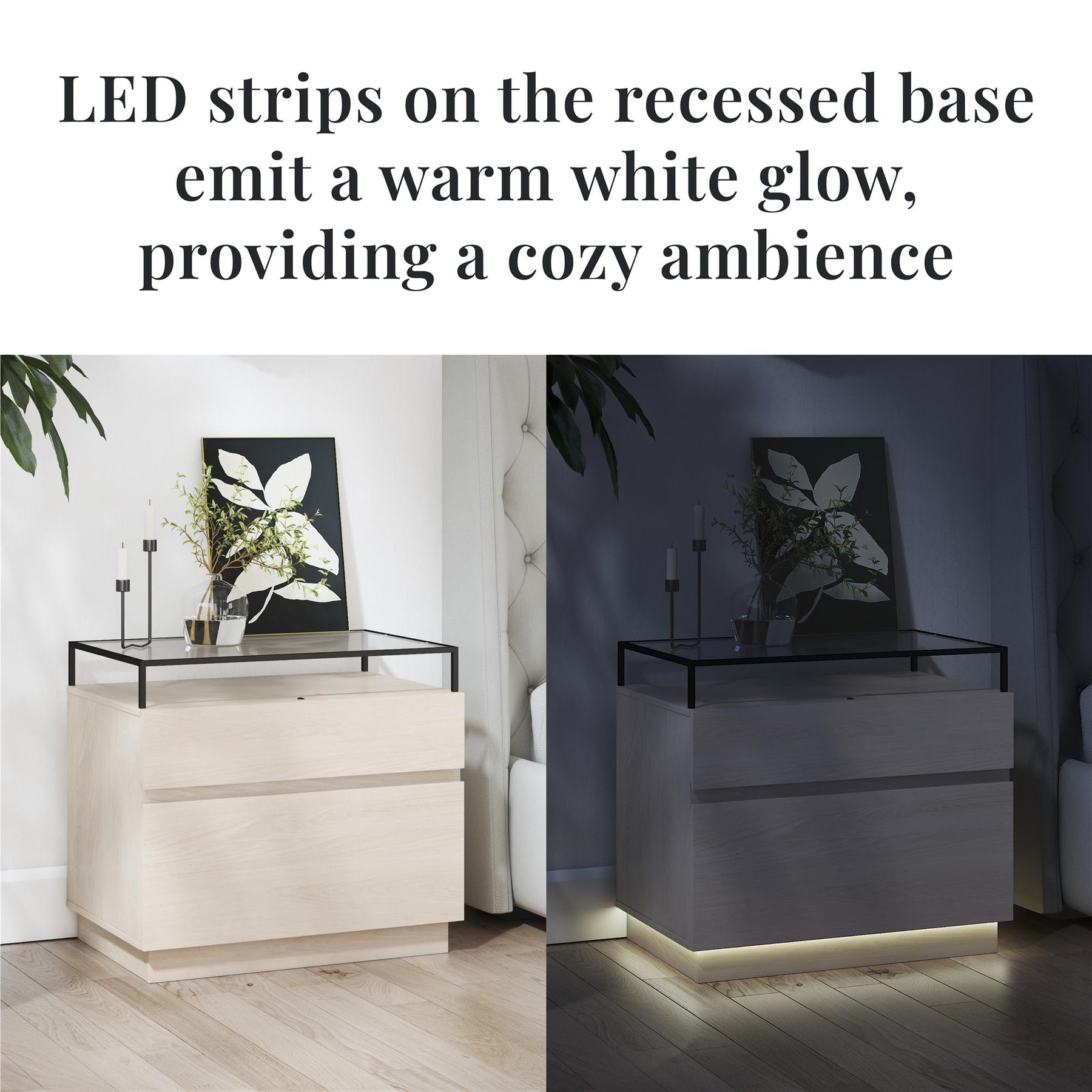 Devon Nightstand with Drawers, LED Lights and Glass Top - Eden Ash