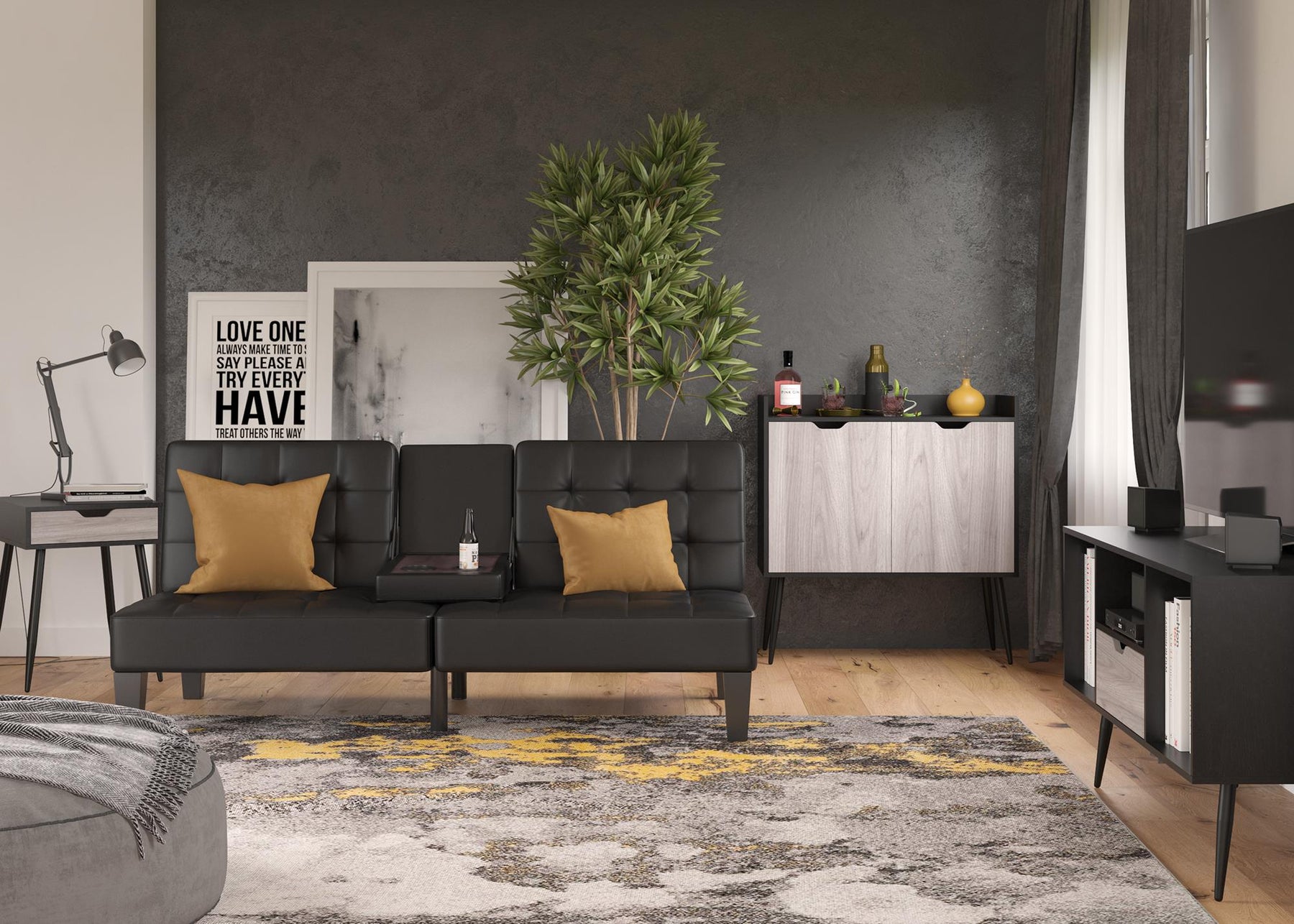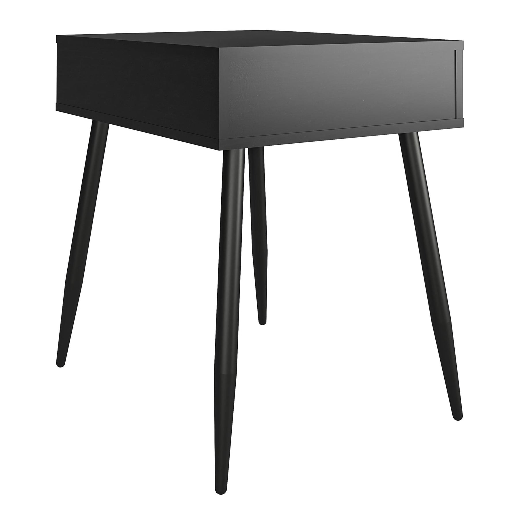 Update your living room vibes with the RealRooms Grafton End Table. This end table is designed with a mix of mid-century modern and fashion forward details. The two-tones create a high contrast style that is sure to be fun to decorate with. This end table is the perfect size to keep your coasters, remotes and a reading lamp nearby. With the convenient drawer, you can keep your tabletop clutter free. The woodgrain finish on the laminated MDF and particleboard will look gorgeous with the light woodgrain look of the drawer front. The end table ships flat to your door and 2 adults are recommended to assemble. The tabletop can hold up to 50 lbs. while the drawer can hold 10 lbs. Assembled dimensions: 24.01"H x 17.99"W x 22.99"D.