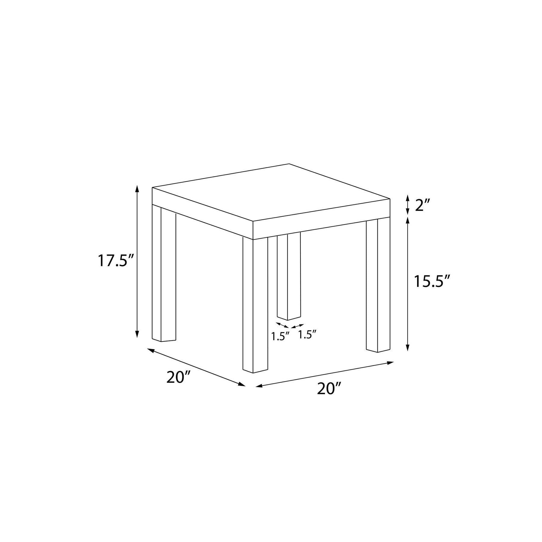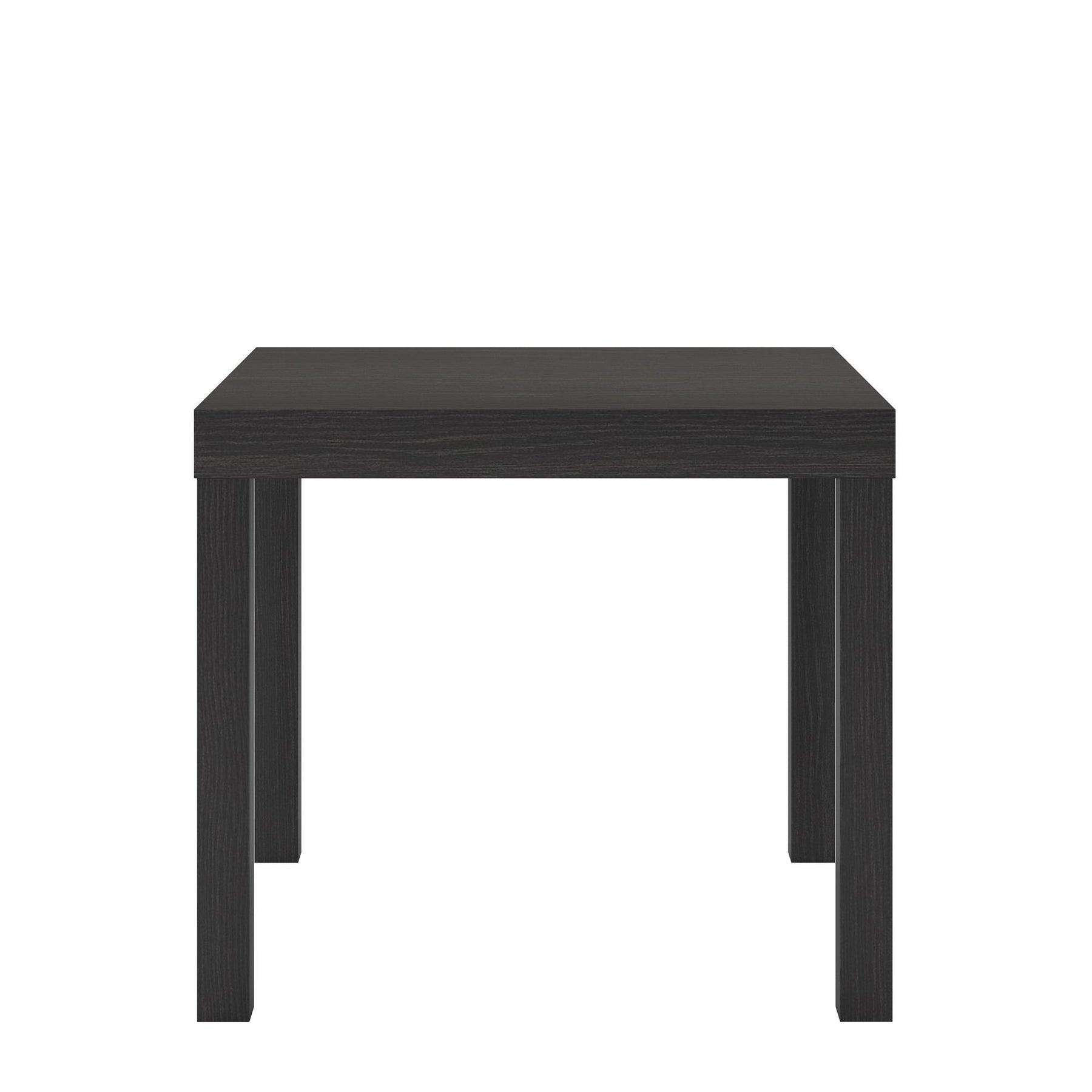 Keep your essentials close by with the Ameriwood Home Parsons End Table. Made of PVC laminated hollow core, the beautiful espresso finish pairs well with any style and decor. Keep your reading lamp, remotes, and electronics on the table top to have everything you need for a night in within reach. The minimalistic design is ideal for small spaces like dorm rooms and first apartments. The sturdy construction and water resistant finish will keep this End Table looking great for years to come. The End Table ships flat to your door and requires minimal assembly upon opening. Simply attach the 4 legs to begin using. Once assembled, the End Table measures to be 17.5"H x 20"W x 20"D.